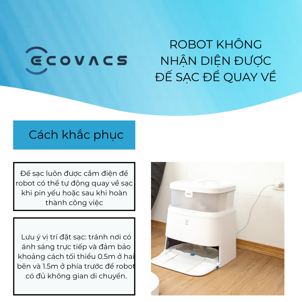 Trong quá trình sử dụng, robot hút bụi Ecovacs có thể gặp một số sự cố khiến thiết bị hoạt động không ổn định. Việc nắm rõ nguyên nhân và cách khắc phục sẽ giúp bạn xử lý nhanh, tiết kiệm thời gian và đảm bảo robot luôn vận hành trơn tru.