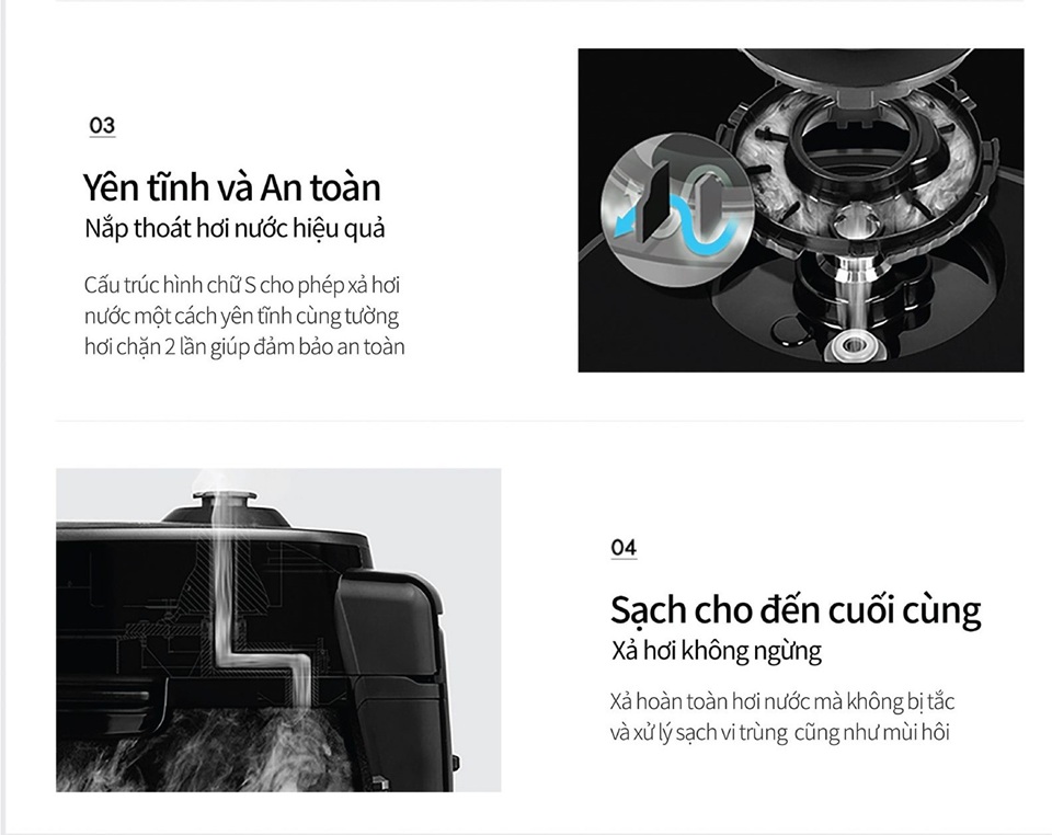 Sản phẩm được tích hợp hơn 23 cơ chế bảo vệ thông minh. Trong đó có các tính năng như: kiểm soát áp suất, khóa nắp tự động, chống trào, tự ngắt khi quá nhiệt, phát hiện lỗi vận hành… Nồi vận hành êm ái, không gây tiếng ồn lớn và rất an toàn khi dùng trong gia đình có trẻ nhỏ.