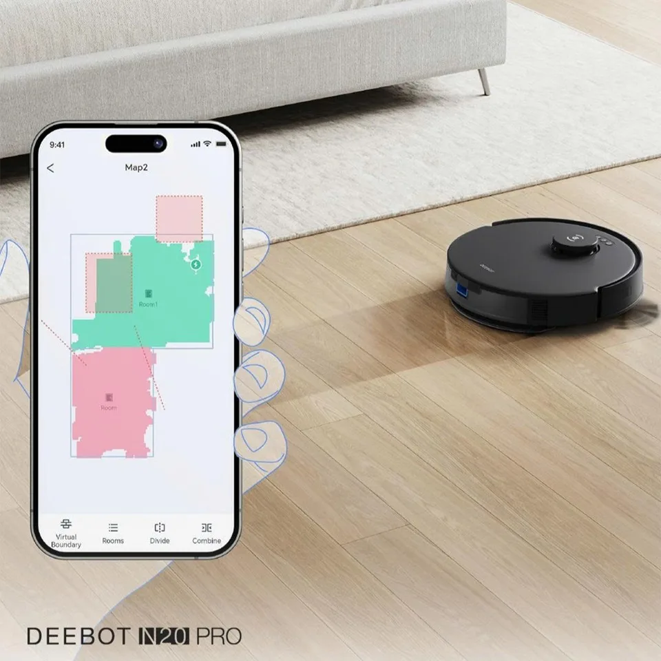 Đường di chuyển được sắp xếp khoa học, tối ưu thời gian và diện tích làm sạch. Người dùng có thể lưu nhiều bản đồ tầng, đặt vùng cấm và chỉ định khu vực dọn ngay trên ứng dụng. Nhờ khả năng định vị thông minh, N20 Pro đảm bảo không bỏ sót bất kỳ vị trí nào trong ngôi nhà.