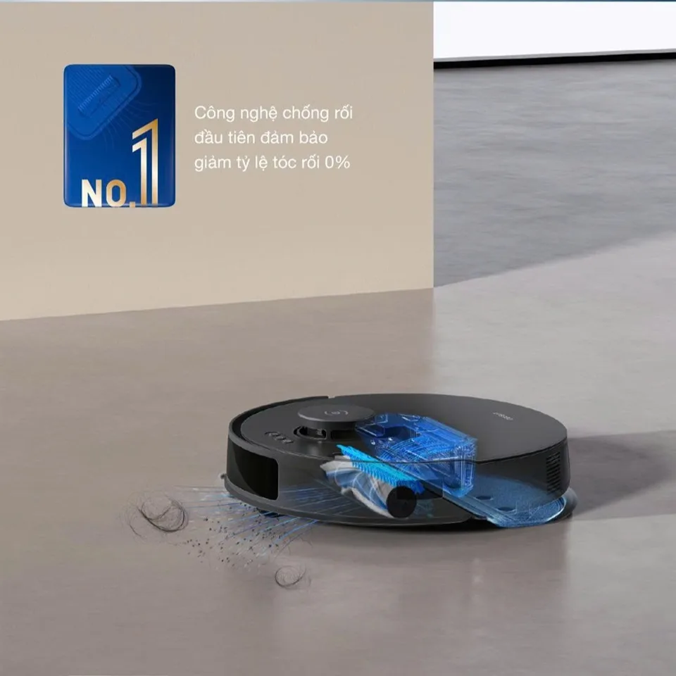 Ecovacs Deebot N20 Pro được trang bị bàn chải chính thiết kế đặc biệt với các dải gân chéo và lược kép. Cấu trúc này giúp gỡ tóc và lông thú ngay khi robot vận hành, ngăn tình trạng quấn vào trục chổi.