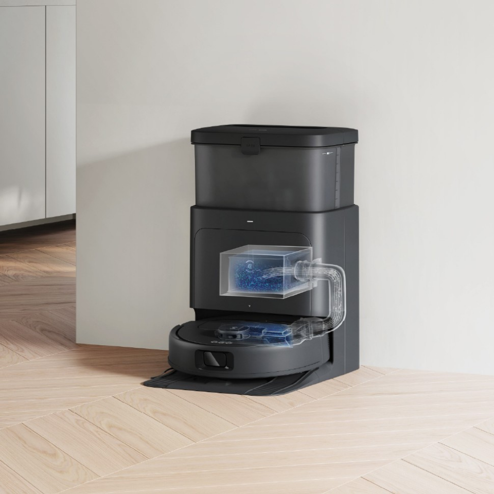 Tự động đổ rác: hộp bụi robot sẽ được hút sạch vào túi chứa bụi 2.6L trong dock (~60 ngày mới cần thay túi).