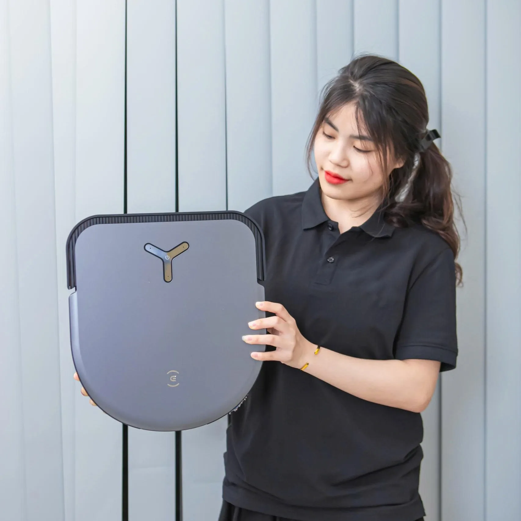 Bề mặt robot được làm từ nhựa cao cấp phủ sơn mờ chống bám vân tay, mang lại vẻ ngoài sang trọng và bền bỉ. Cụm cảm biến LiDAR bố trí khéo léo trên đỉnh máy, vừa tránh va chạm vừa quét 360° chính xác.