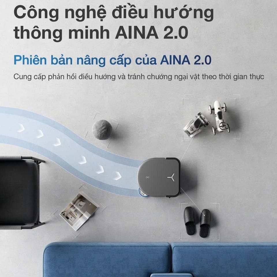 DEEBOT X5 PRO OMNI sử dụng hệ thống AINA 2.0 kết hợp cảm biến AIVI 3D và LiDAR d-ToF. Công nghệ này giúp robot lập bản đồ nhanh, định vị phòng và phân vùng chính xác.