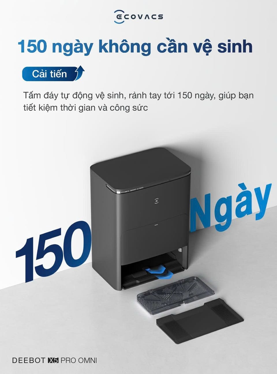 Hỗ trợ người dùng lên tới 150 ngày mà không cần vệ sinh thủ công.