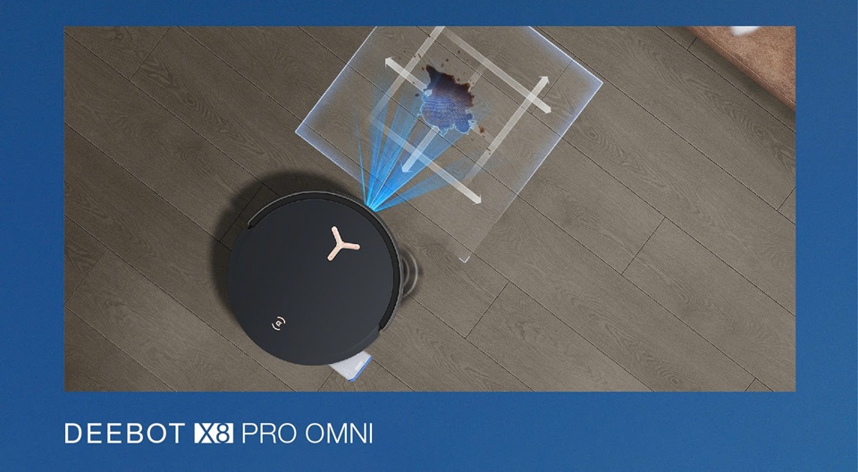 Ecovacs Deebot X8 Pro Omni được trang bị AI Instant Re-Mop, cho phép robot tự nhận diện khu vực có vết bẩn cứng đầu hoặc bẩn nhiều. Ngay khi phát hiện, robot sẽ tự động tăng lực hút hoặc lau lại để đảm bảo sàn sạch hoàn toàn. Tính năng này giúp tối ưu thời gian làm sạch và mang lại hiệu quả vượt trội so với các robot thông thường.