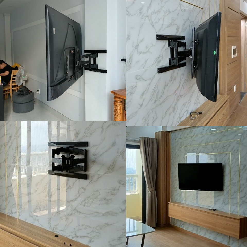 An toàn tuyệt đối: Khung treo cố định, hạn chế rung lắc, bảo vệ tivi và tường gắn.