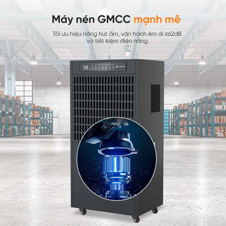 Lumias LID-S180 là máy hút ẩm công nghiệp thế hệ mới với khả năng xử lý ẩm vượt trội. Máy có công suất hút ẩm 180 lít mỗi ngày, đáp ứng nhu cầu sử dụng trong không gian rộng 250 – 400m². Đây là lựa chọn lý tưởng cho kho hàng lớn, nhà máy, xưởng sản xuất, phòng máy hoặc khu vực lưu trữ có độ ẩm cao quanh năm. Thiết bị mang lại hiệu quả hút ẩm nhanh, ổn định và phù hợp cho vận hành liên tục.