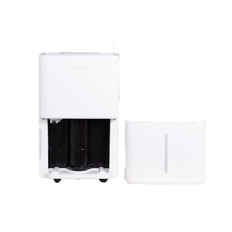 Bình chứa nước có cảm biến tự ngắt khi đầy. Người dùng có thể lắp ống xả phía sau máy. Điều này giúp máy chạy liên tục nhiều giờ. Tính năng hữu ích cho phòng phơi đồ hoặc kho chứa.