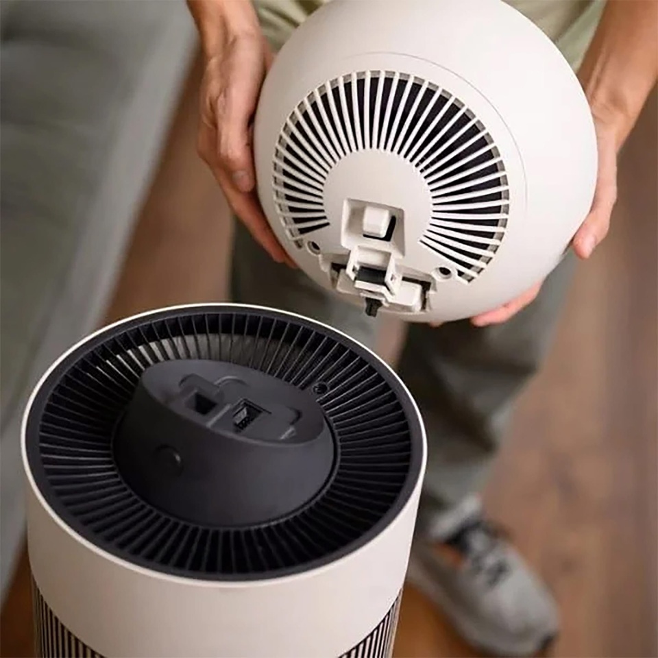 Với chiều cao chưa đến 1m và phần đế tròn chắc chắn, máy dễ dàng bố trí ở mọi không gian nội thất. Bánh xe ẩn dưới thân giúp bạn di chuyển tiện lợi. Nắp và bộ lọc có thể tháo rời nhanh chóng để lau chùi, bảo dưỡng định kỳ.