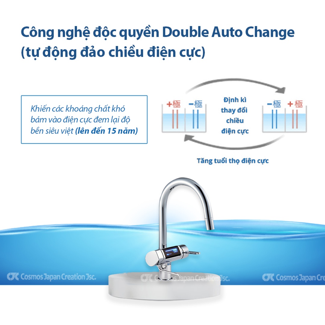 Công nghệ này còn giúp giữ chất lượng nước ion kiềm ổn định. Nguồn nước đầu ra luôn sạch, giàu Hydrogen và có pH chính xác theo từng chế độ chọn.