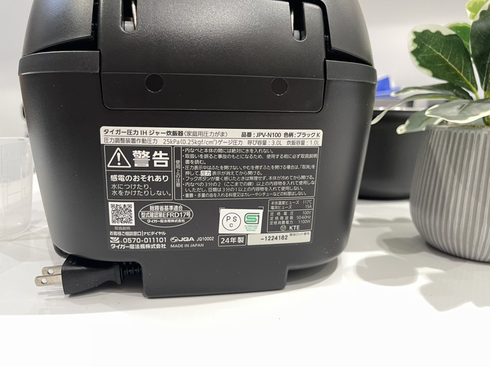Thông số kỹ thuật nồi cơm Tiger JPV-N100