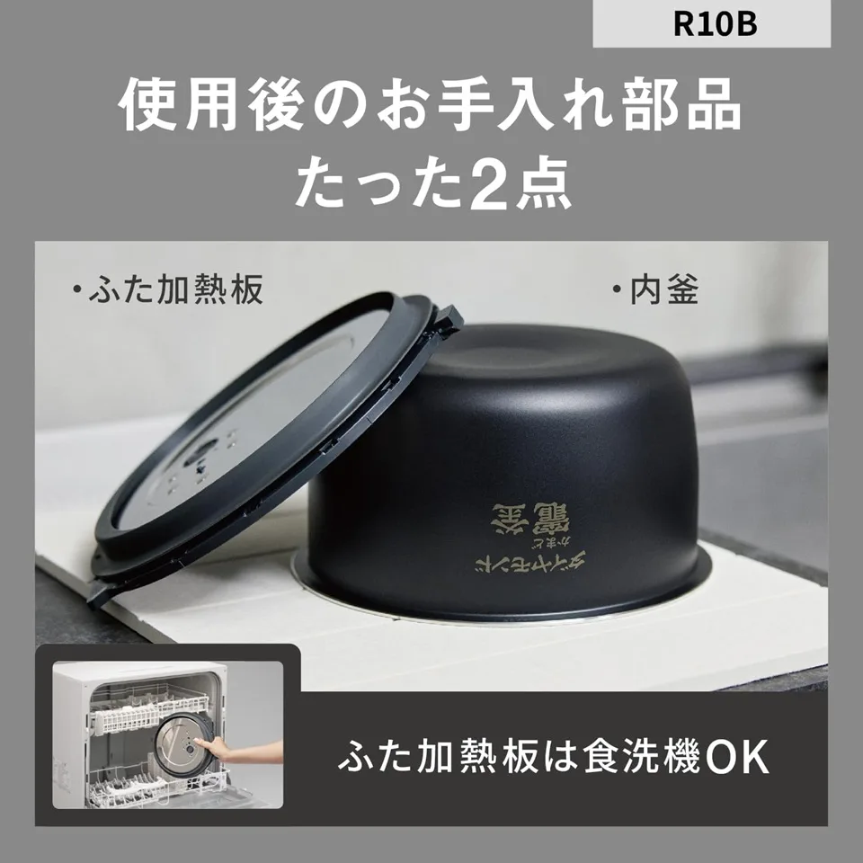 Phím điều khiển cảm ứng rõ ràng, dễ thao tác, có hướng dẫn tiếng Nhật kèm hình ảnh trực quan. Nồi trong và nắp thoát hơi dễ tháo lắp, vệ sinh nhanh chóng, hạn chế bám mùi hay vi khuẩn tích tụ.
