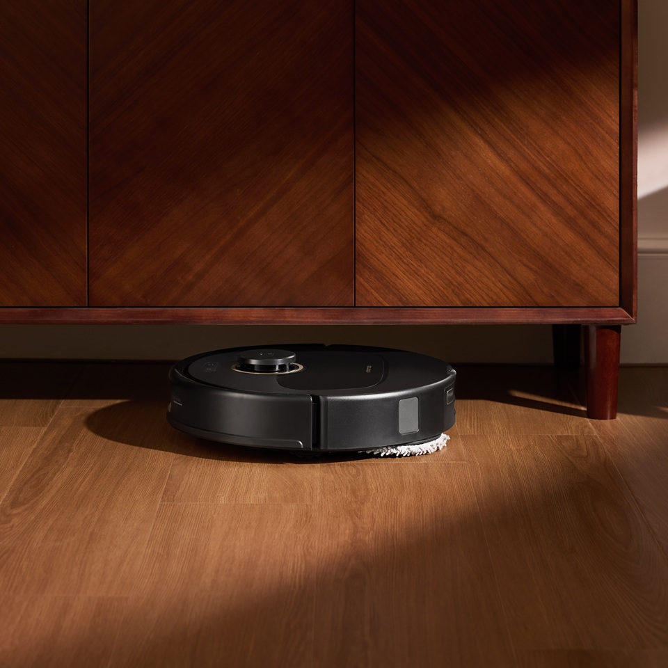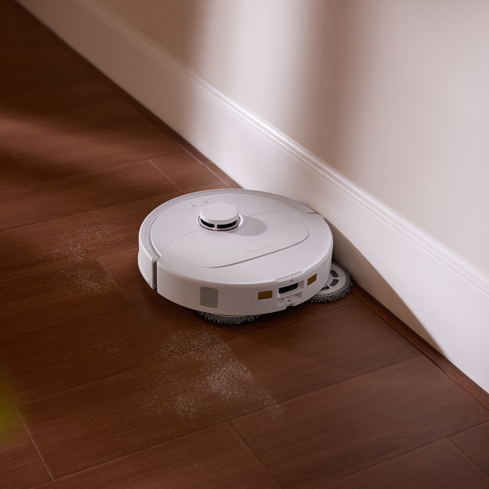 Robot sử dụng giẻ lau xoay kép tạo lực chà mạnh. Tốc độ 200 vòng/phút giúp loại bỏ vết cà phê, nước ngọt và bùn khô. Giẻ xoay ngược chiều, không để lại vệt bẩn. Khi gặp thảm, giẻ tự nâng 10mm để tránh làm ướt. Phù hợp cho nhà sàn hỗn hợp gỗ – thảm.