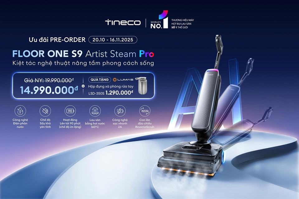 Máy hút bụi lau sàn khô ướt Tineco Floor One S9 Artist Steam Pro – Vệ sinh toàn diện bằng hơi nước 160°C