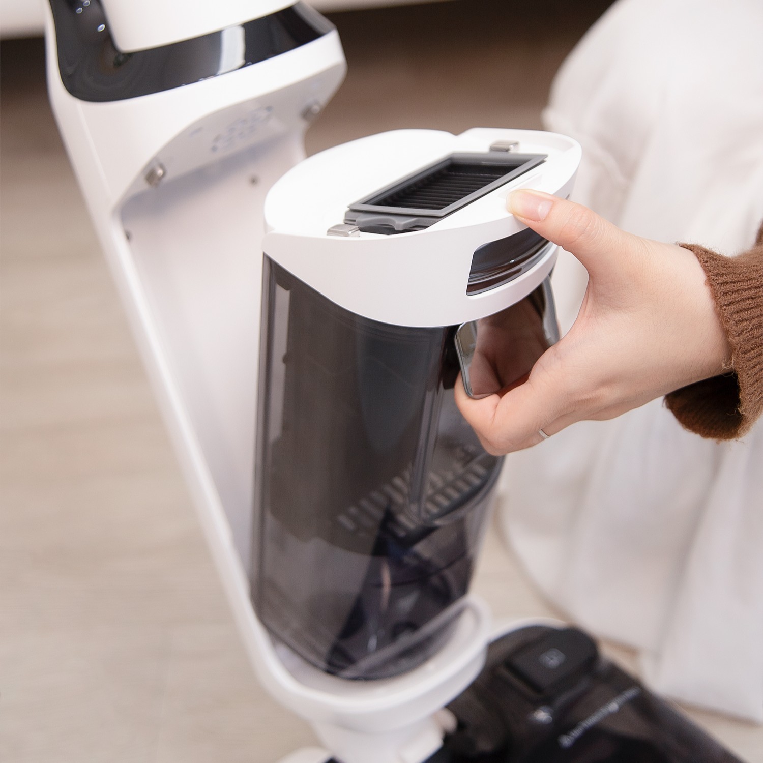 Sau mỗi lần sử dụng, Máy hút bụi lau sàn này sẽ tự động giặt sạch con lăn bằng nước và xoay tốc độ cao để loại bỏ bụi bẩn, tóc rối. Tiếp đó, hệ thống sấy nhiệt độ cao 85°C giúp làm khô nhanh chóng, ngăn ẩm mốc và mùi hôi.