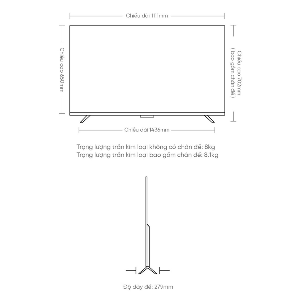 Khung kim loại cao cấp giúp tivi bền chắc và tản nhiệt tốt hơn. Phần chân đế đôi vững chắc có thể tháo rời linh hoạt, phù hợp cho cả treo tường hoặc đặt bàn.