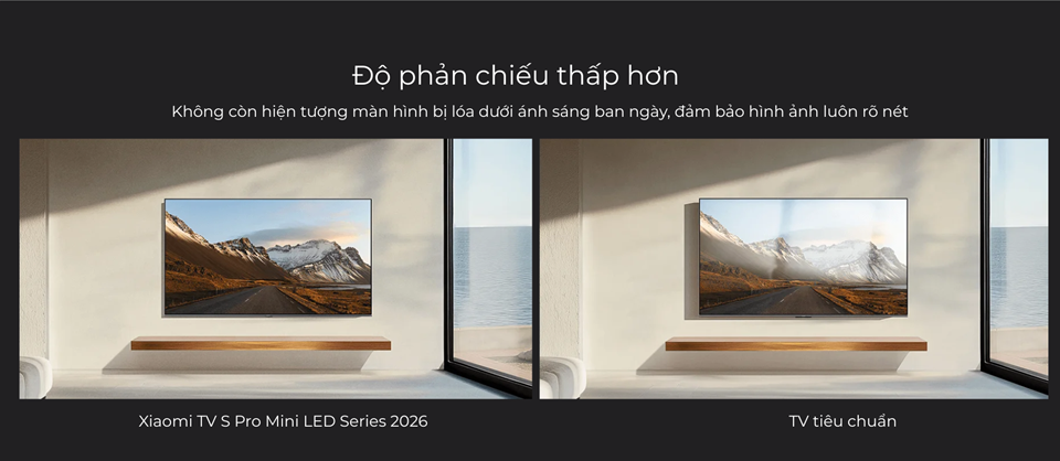 Với công nghệ QD-Mini LED thế hệ mới, mẫu Xiaomi S Pro L55MB-SSEA giá rẻ trong phân khúc cao cấp có tới 408 vùng đèn nền độc lập. Nhờ đó, độ tương phản sâu, màu đen thuần khiết và chi tiết sáng rõ rệt. Lớp phủ chống phản xạ giúp hình ảnh luôn trong trẻo ngay cả khi xem ban ngày.