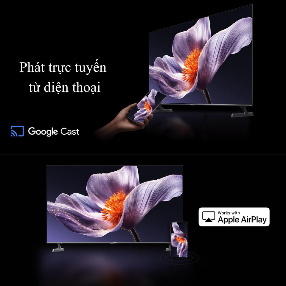 Google TV thông minh, hỗ trợ Google Assistant và AirPlay.