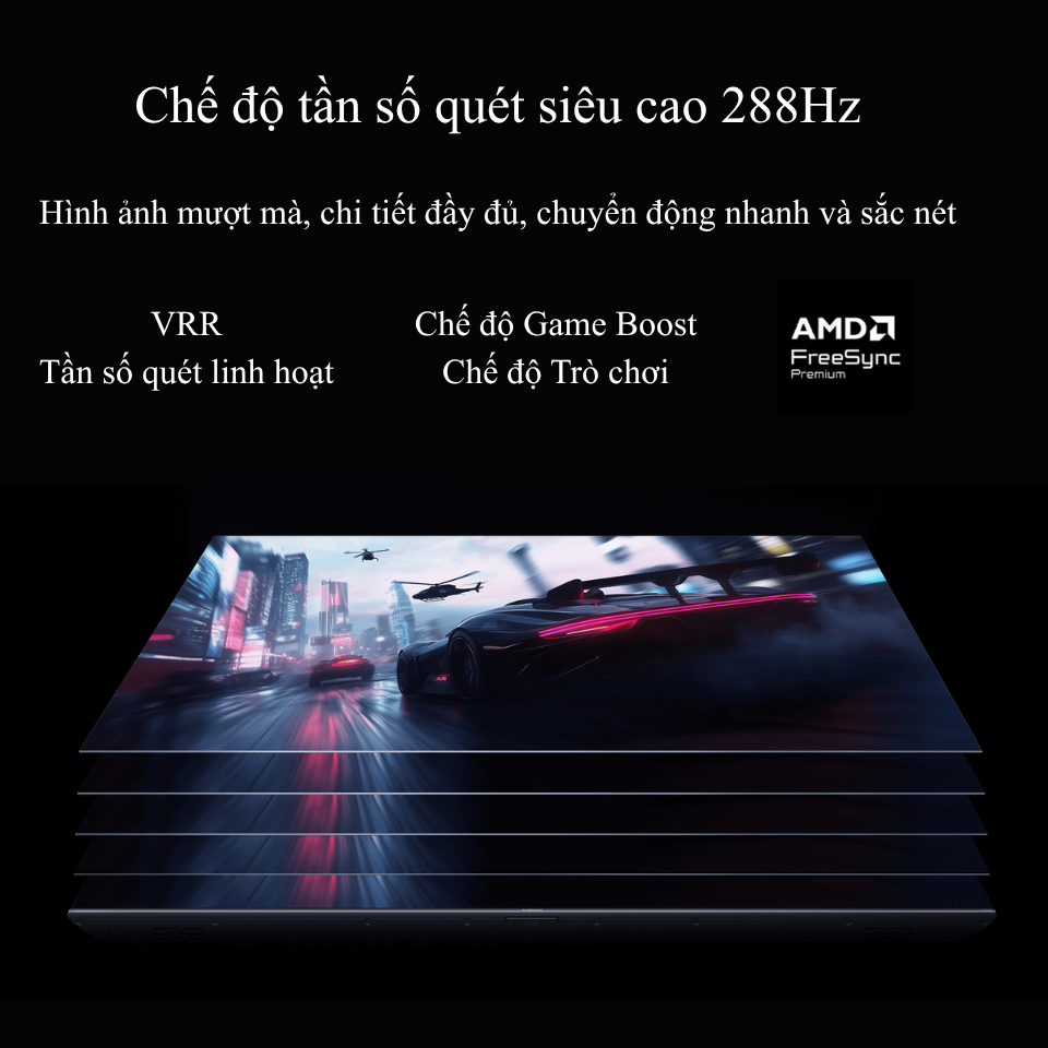 Tần số quét 144Hz, hỗ trợ Game Boost 288Hz.